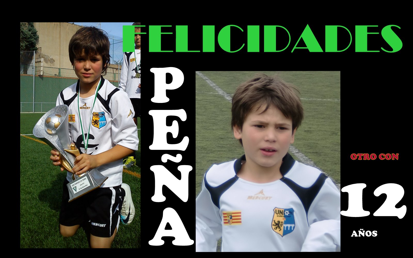 Ya tienes 12 años CAMPEÓN, esperamos que disfrutes de tu día y el sábado lo celebres con un GOLITO de esos de falta que tanto te gustan.
